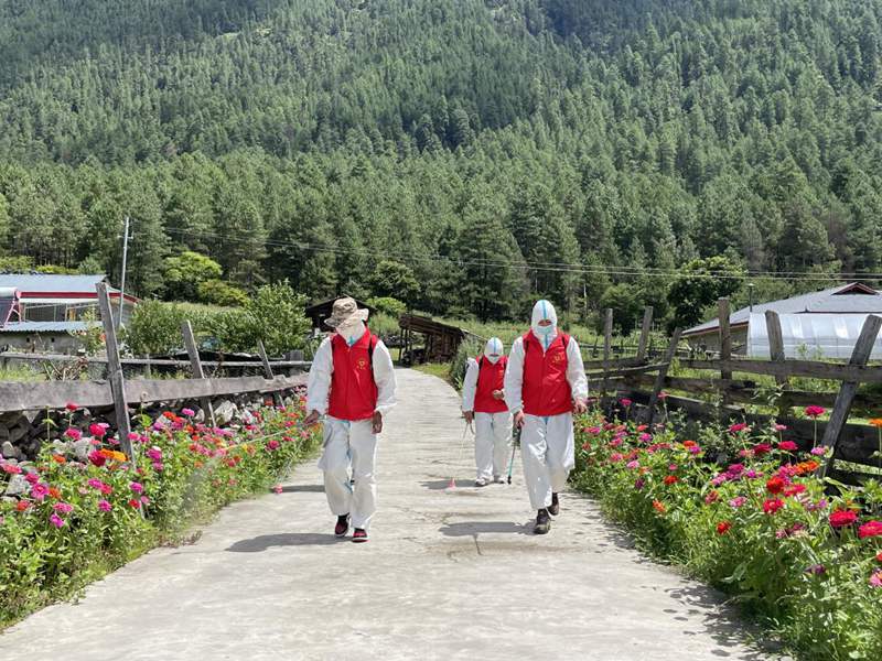 林芝市察隅縣布宗村新時代文明實踐站志愿者開展消殺工作。圖片由察隅縣提供