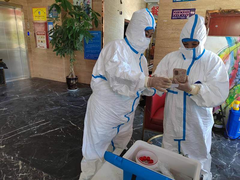 很快她們的申請有了回應(yīng),兩位老黨員變身“大白”,走上了核酸檢測崗位。從上午9點開始,上門為隔離人員進行核酸采樣。一直到夜里11點才回家,卸下“大白”防護服時渾身已濕透。“能參與到疫情防控志愿服務(wù)中,做點力所能及的事兒,是我的義務(wù)?!蓖白楷斦f。