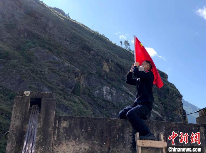 巡邏間隙,移民管理警察攻國杰在口岸遺址上方更換國旗。 郭章統(tǒng) 攝