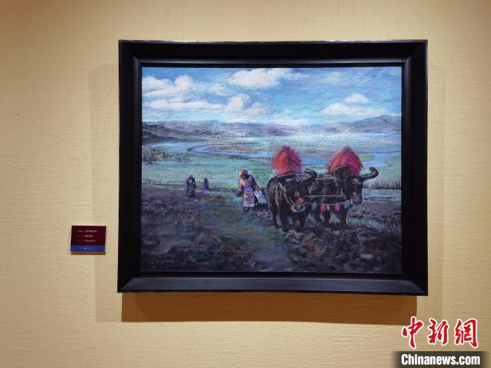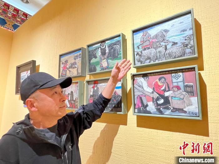 策展人李亞男向中新網(wǎng)記者介紹,崔曉曉首次到西藏那曲便結(jié)識了一位當(dāng)?shù)嘏笥选麑⑦@位藏族青年放牧、添置汽車、蓋新房等畫面用畫筆記錄了下來,在本次展覽中展出。