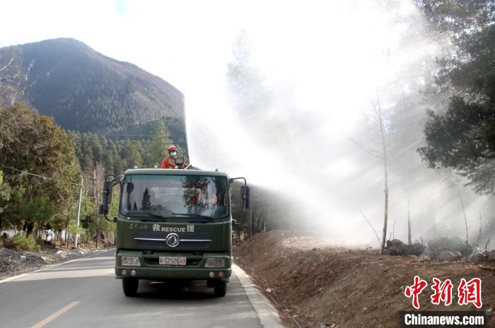 踏查中,中隊出動20人,編排成3個小組,攜帶地圖、指北針、無人機等勘察裝備,采取實地查看、詢問了解、研究分析等方式對植被含水量、可燃物載量、水源分布、地形地貌、植被類型、道路交通等情況進行勘察,及時掌握林情、社情等最新數(shù)據(jù)資料。同時,配合波密縣應(yīng)急管理局、林草局等部門沿318國道沿線開展林下可燃物清理和灑水增濕作業(yè)。