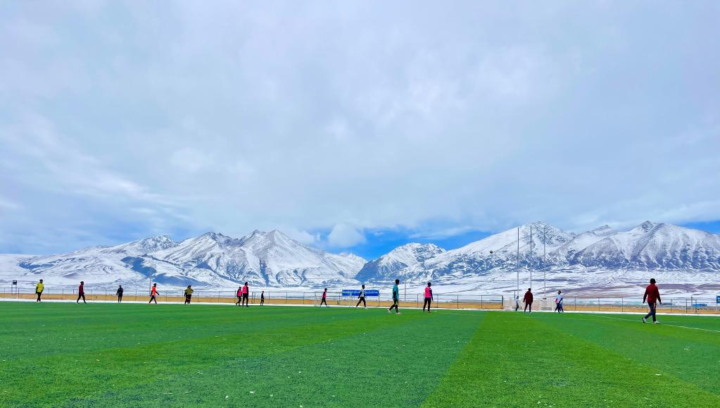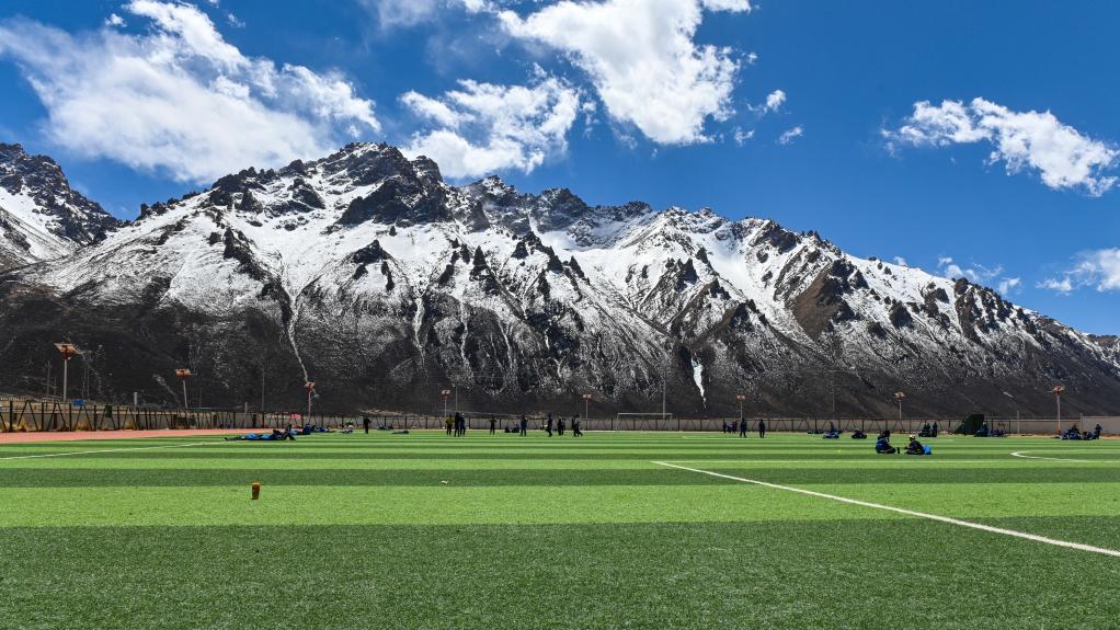 這是那曲市嘉黎縣中學(xué)的足球場(3月30日攝)