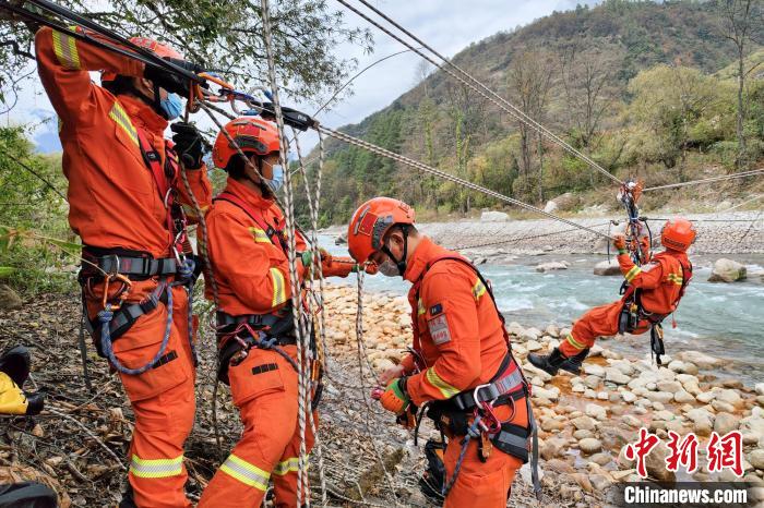 繩索渡河救援訓(xùn)練現(xiàn)場?!√剖啦?攝