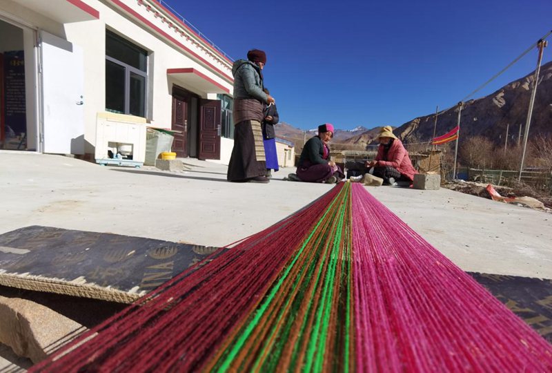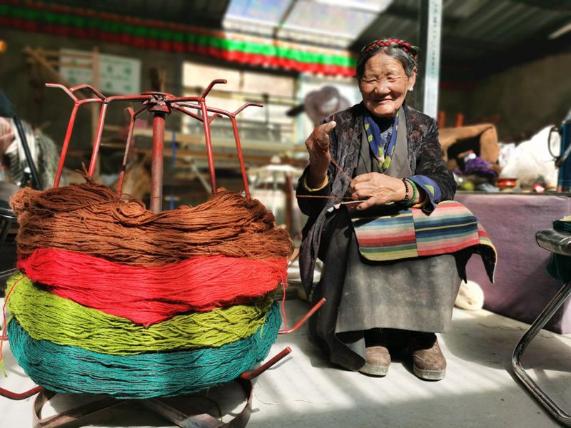 除了賣產(chǎn)品,次仁曲珍也心系十里八村的其他群眾?!拔覀兊脑牧希ㄑ蛎?、羊絨),都是從周邊村子收購的。其實,以前很多老百姓家的羊毛要么自用,要么送人,幾乎很少出售?,F(xiàn)在他們可以送到我這里,市場價7元—10元/斤。”古老的紡織技藝與珍稀羊毛(絨)材質(zhì)融合,是每一位阿佳用心編織的直抵人們內(nèi)心深處的柔軟,更是她們的五彩夢想。