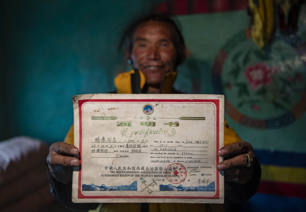 和下了山后日子過(guò)得風(fēng)生水起的多吉不同,格桑傳奇的經(jīng)歷,并沒(méi)有給生活帶來(lái)什么本質(zhì)的改變。格桑并沒(méi)有出名,在他看來(lái),登頂?shù)慕?jīng)歷除了能證明自己身體好,也說(shuō)不出其他意義。登頂照片搬家的時(shí)候就找不到了,除了一張登頂證書(shū),還留下的紀(jì)念品,就是“冬天放牧?xí)r穿著暖和的連體羽絨服”。