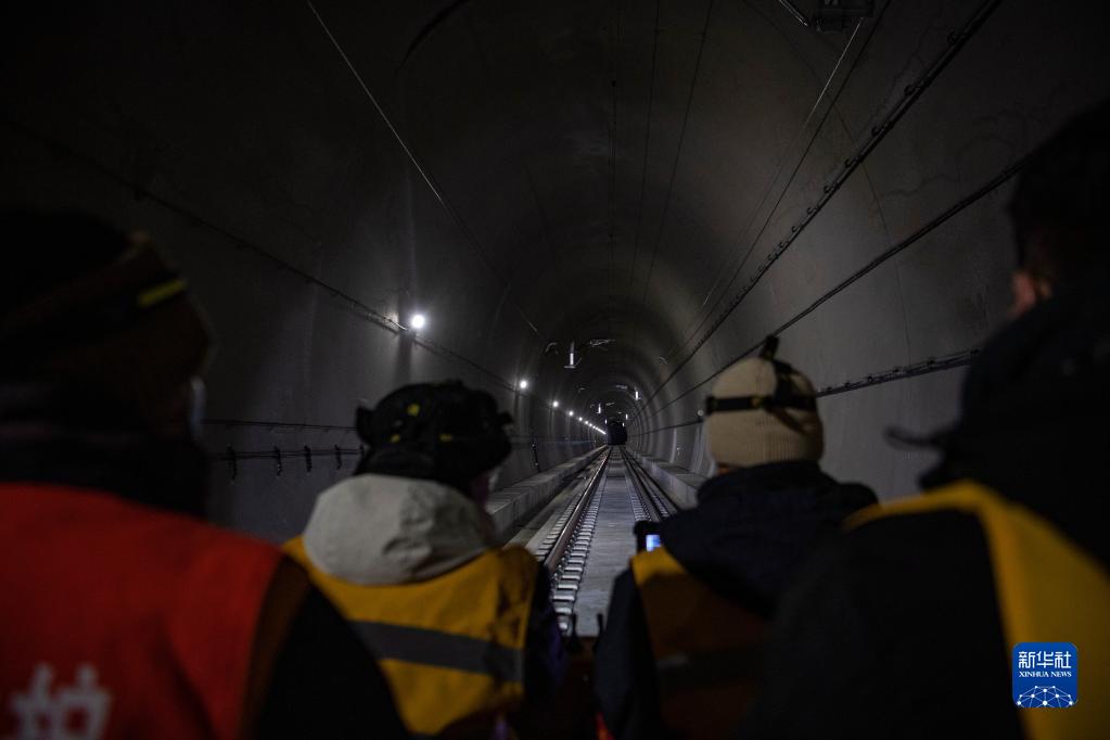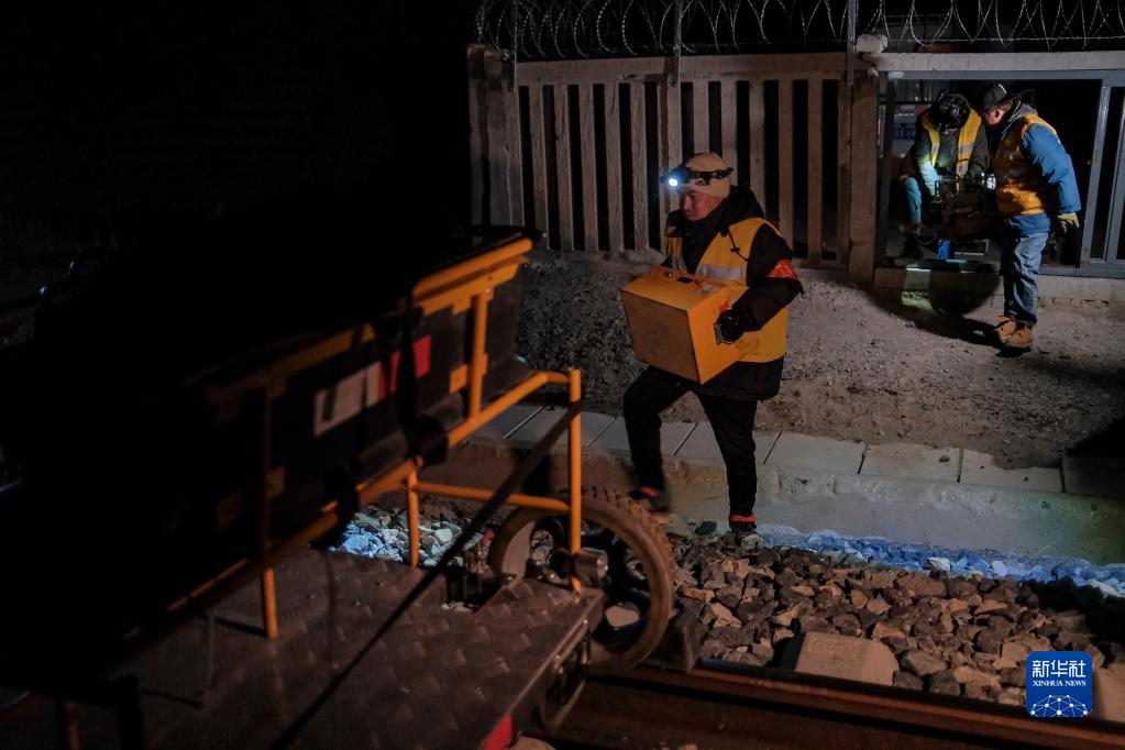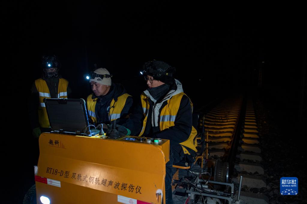 鋼軌探傷隊員在拉林鐵路進行鋼軌探傷作業(yè)(1月12日攝)。新華社記者 孫非 攝