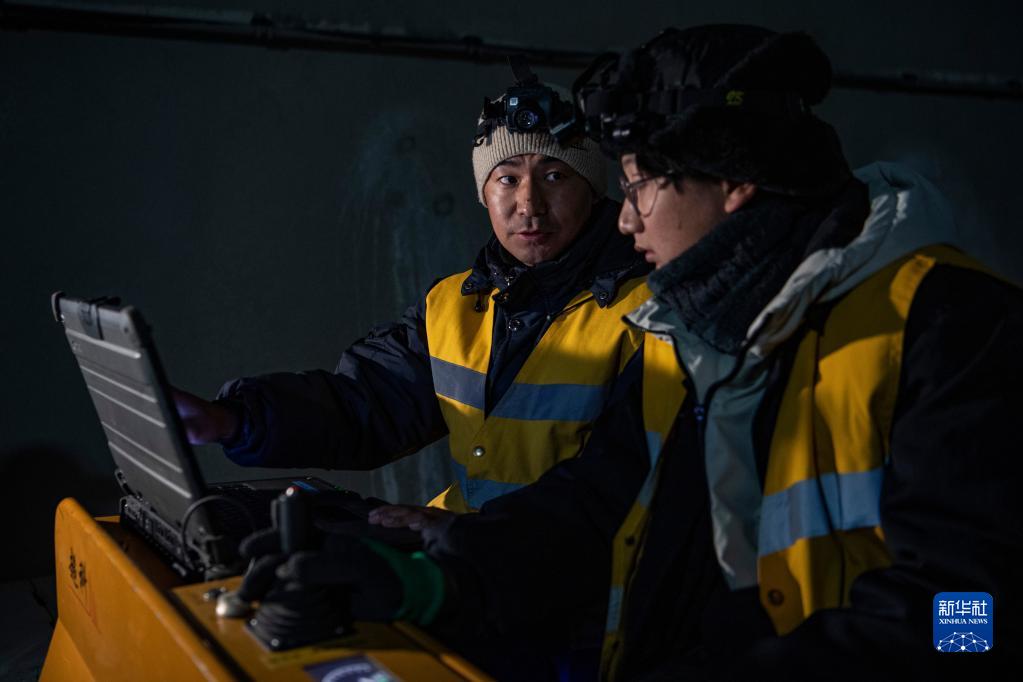 羅布(左)和同事對鋼軌的疑似傷損波形進行確認(1月12日攝)。新華社記者 孫非 攝