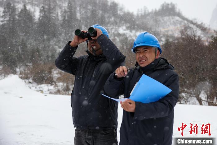 盤山公路上,積雪和暗冰使車輛打滑無法繼續(xù)前行,羅布頓珠和隊友只好下車,給車輛掛好防滑鏈繼續(xù)前行,原本兩個小時的車程,這次花了4個小時才抵達巡線點。