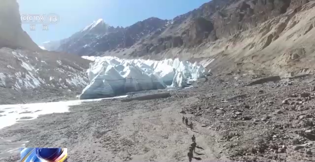 經(jīng)過一個多小時的車行顛簸,巡邏分隊到達了車行道路的終點,接下來的徒步巡邏才是此次巡邏挑戰(zhàn)的開始。翻越海拔6000米的冰川,這對于常年駐守的官兵們來說也是極大的挑戰(zhàn),行進途中稍不注意就會摔倒在地,即便是經(jīng)驗豐富的老兵走在上面也時常手腳并用才能前行。