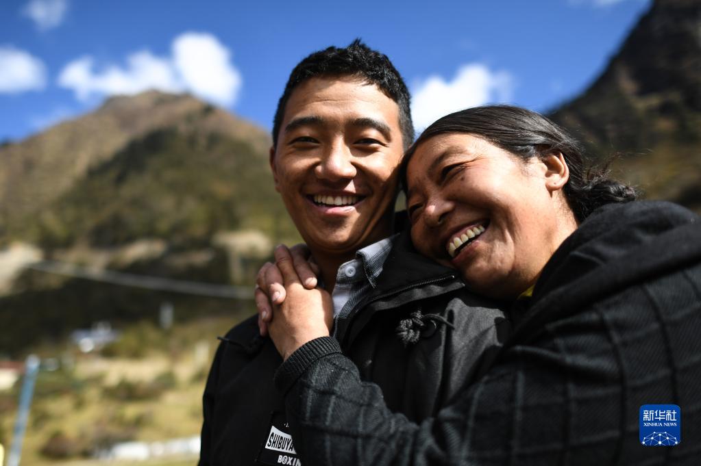 央宗和兒子索朗頓珠在一起(2017年10月29日攝)。索朗頓珠是玉麥鄉(xiāng)第一位大學生。新華社記者 普布扎西 攝