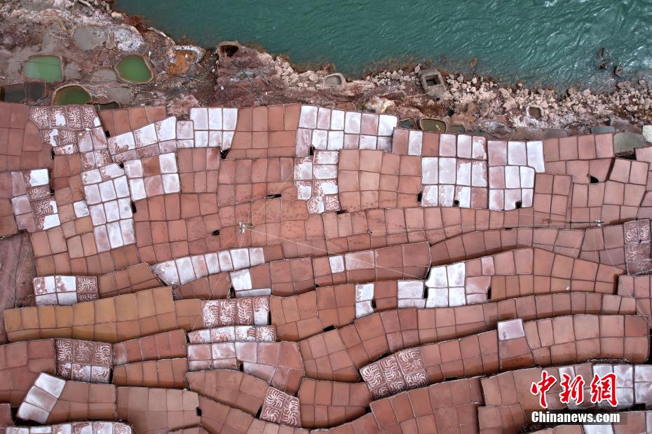 在西藏昌都芒康縣納西民族鄉(xiāng)瀾滄江兩側(cè),有一處古老的、大大小小數(shù)千塊鹽田。史料記載,當(dāng)?shù)貢覃}歷史距今已有1000多年。木柱搭建的鹽田,高低錯落,依河谷山勢,在臨江兩岸蔓延。當(dāng)?shù)孛癖姀慕系柠}井、鹽池中抽出鹵水,引入鹽田,經(jīng)過陽光與風(fēng)的杰作,結(jié)晶成鹽。進入鹽田,房內(nèi)頂部到處懸掛鐘乳狀晶鹽,仿若“水晶宮”的世界。圖為2月13日,西藏昌都芒康千年古鹽田。(無人機照片)