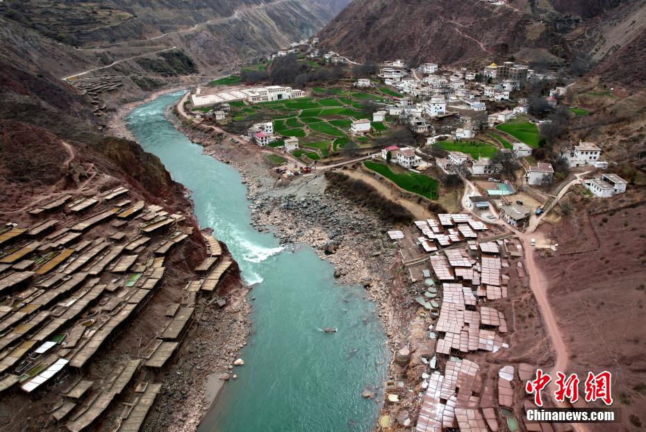 2月13日,西藏昌都芒康縣納西民族鄉(xiāng)加達村村民俯瞰古鹽田。