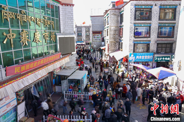 圖為2月13日,拉薩老城區(qū)沖賽康市場(chǎng)人流如織。中新社記者 江飛波 攝