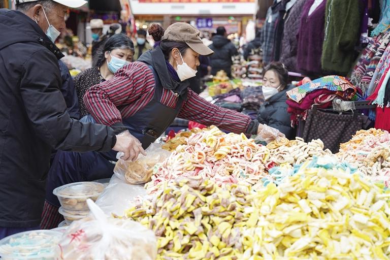 “市場(chǎng)現(xiàn)有1200多家商戶(hù),經(jīng)營(yíng)商品有零食、蔬菜、肉類(lèi)、干雜、五金、服裝等。藏歷新年臨近,每天前來(lái)置辦年貨的市民絡(luò)繹不絕,日均人流量超1萬(wàn)。為保證藏歷新年期間年貨充足,市場(chǎng)商戶(hù)們提前籌備、積極備貨,目前,各類(lèi)商品庫(kù)存充足、品種豐富,基本上能夠滿(mǎn)足不同消費(fèi)者的需求?!睕_賽康商貿(mào)有限公司負(fù)責(zé)人尼瑪告訴記者。此外,沖賽康市場(chǎng)將于2月19日至27日暫停營(yíng)業(yè),28日起正常營(yíng)業(yè)。