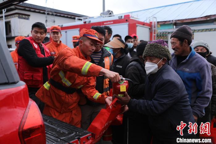 該中隊(duì)為每家每戶配發(fā)干粉滅火器。西繞拉翁 攝