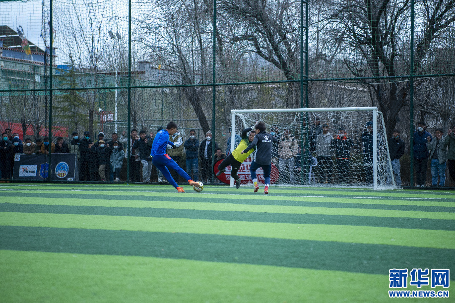 2月14日,巔炯邁瓦隊(duì)球員西繞加措在門前抽射。 新華網(wǎng) 旦增努布 攝