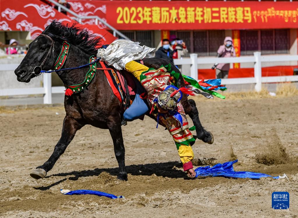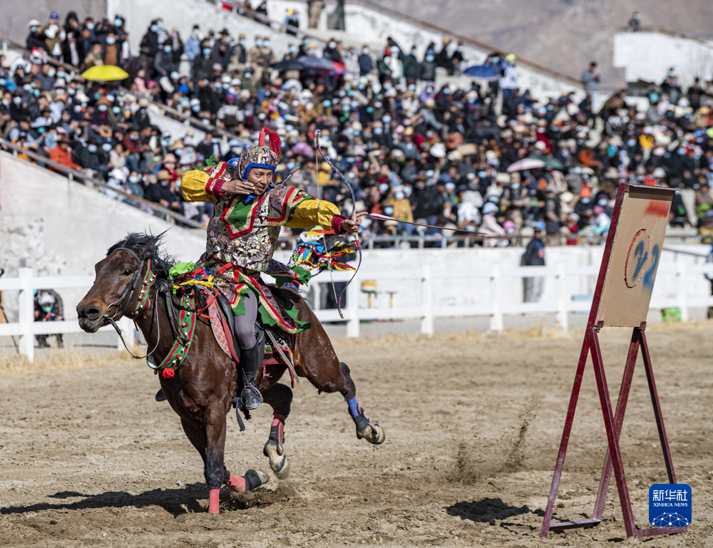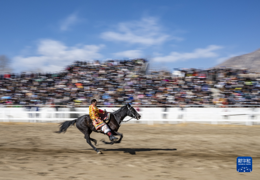 2月23日,在拉薩賽馬場舉辦馬術(shù)表演已成為當(dāng)?shù)貞c祝新年的傳統(tǒng),深受廣大群眾喜愛。騎手們英姿颯爽,為觀眾們帶來騎馬拾哈達(dá)、騎馬射箭等精彩表演。