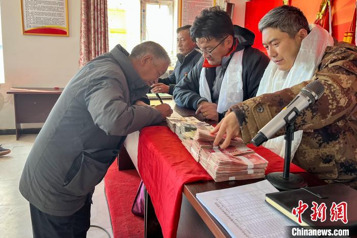 圖為2月19日,西藏那曲安多縣帕那鎮(zhèn)申格卡崗村牧民分紅。中國鐵路青藏集團(tuán)有限公司 供圖