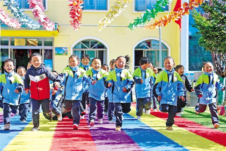 配圖:山南市瓊結(jié)縣雙語幼兒園的孩子們在參加課外活動。(資料圖片)