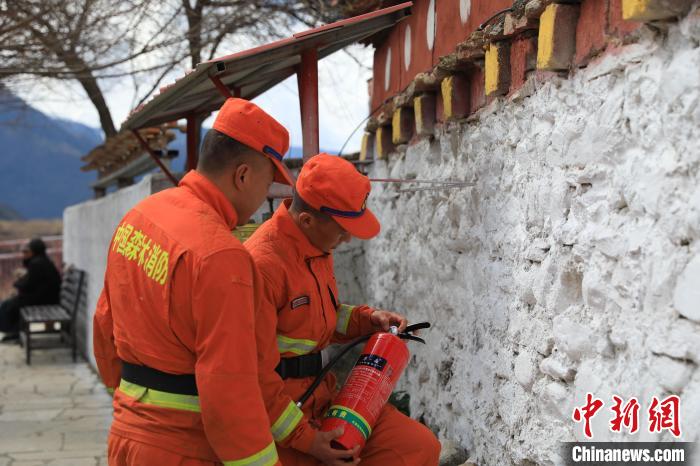 森林消防隊(duì)員正在排查寺廟火災(zāi)隱患?!∥骼@拉翁 攝