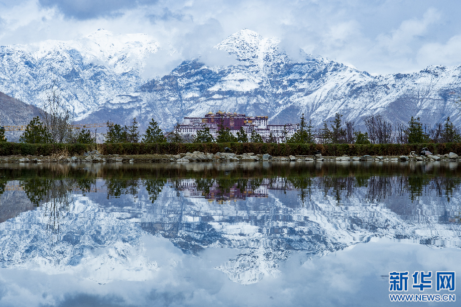 3月30日,在拉薩市南山公園拍攝的雪后布達拉宮。新華網(wǎng) 柑丹鴦琦攝
