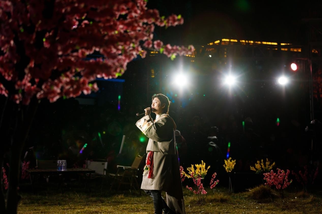 皚皚雪山下,千年古堡旁,灼灼桃花,花開正艷。羅布桑珠、巴金旺甲、齊旦布、桑杰才讓等藏族知名歌手、工布江達(dá)本地歌手、當(dāng)?shù)厝罕婟R聚,流行歌曲與工布民歌等當(dāng)?shù)靥厣硌萁Y(jié)合,為網(wǎng)友們獻(xiàn)上了一場(chǎng)桃花樹下的歌舞盛宴。