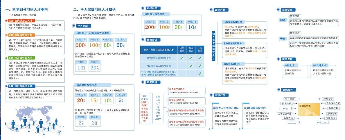 據(jù)悉,近年來,西藏自治區(qū)深入實施人才“育、引、用、留”四大工程,制定出臺了《關(guān)于加強(qiáng)和改進(jìn)新時代西藏人才工作的若干措施(試行)》,科學(xué)劃分引進(jìn)人才類別,將引進(jìn)高層次人才劃分為A、B、C、D四類。在個人補(bǔ)助、科研補(bǔ)助、薪酬待遇、職務(wù)待遇、職稱評聘、住房政策、家屬安置、醫(yī)療保障等方面全力保障引進(jìn)人才待遇。同時,千方百計成就引進(jìn)人才,支持引進(jìn)人才創(chuàng)新創(chuàng)業(yè),激勵引進(jìn)人才成果轉(zhuǎn)化,實行配套表彰獎勵政策。此外,在簡化優(yōu)化人才引進(jìn)程序、實施引才伯樂激勵措施方面均有明確政策。