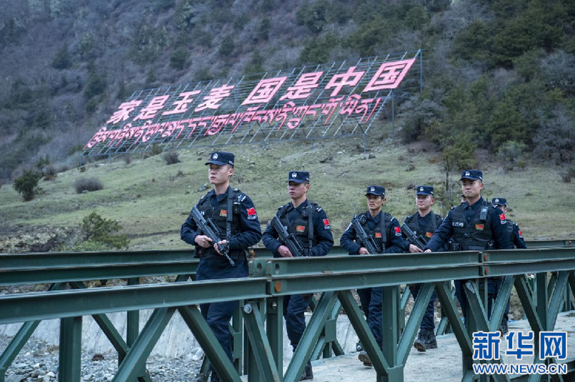 4月8日,玉麥邊境派出所民警在轄區(qū)巡邏。新華網(wǎng) 旦增努布 攝