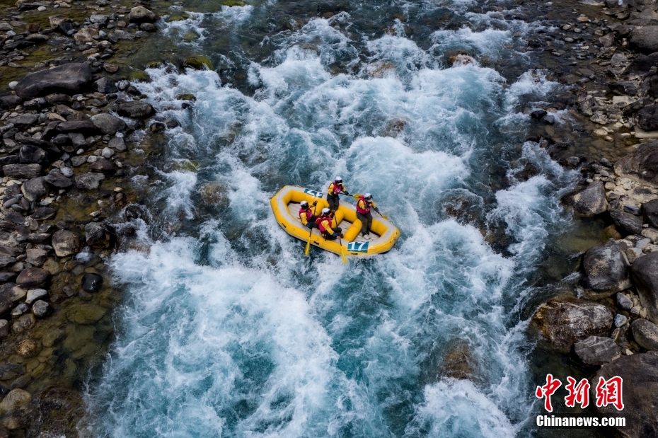 圖為激流漂流筏繞標(biāo)賽比賽現(xiàn)場(chǎng)。(無(wú)人機(jī)照片)中新社記者 貢嘎來(lái)松 攝