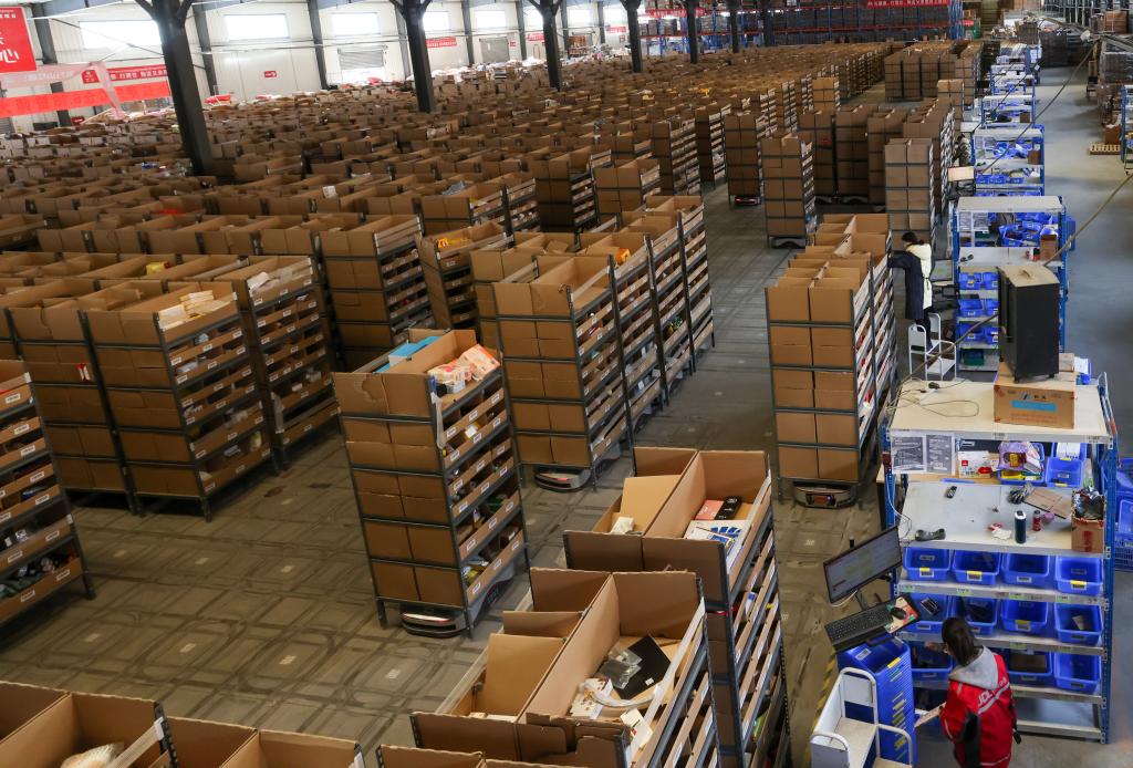 京東集團拉薩倉庫一角的忙碌場景(3月7日攝)。新華社記者姜帆 攝