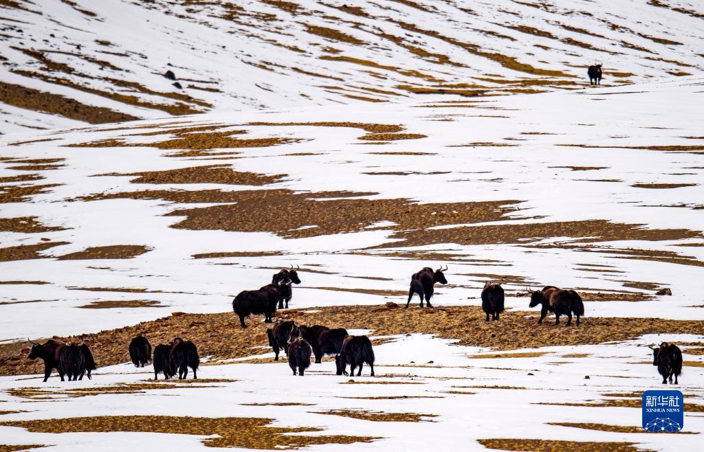 這是在羌塘國家級自然保護區(qū)那曲市雙湖縣區(qū)域內(nèi)拍攝到的成群的野牦牛(4月17日攝) 。新華社記者 姜帆 攝