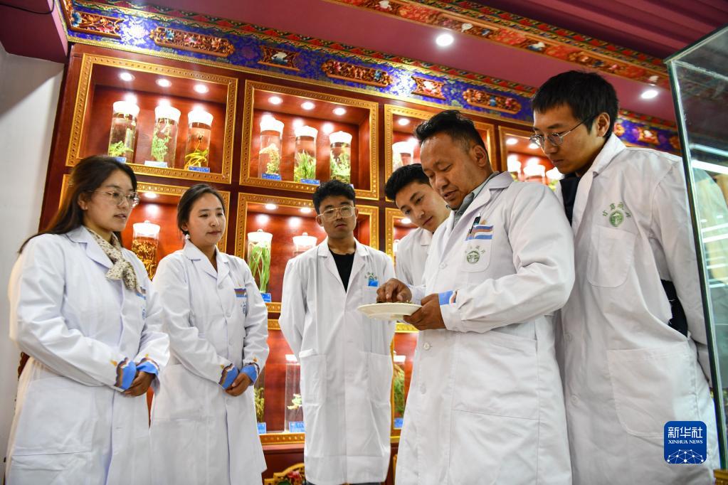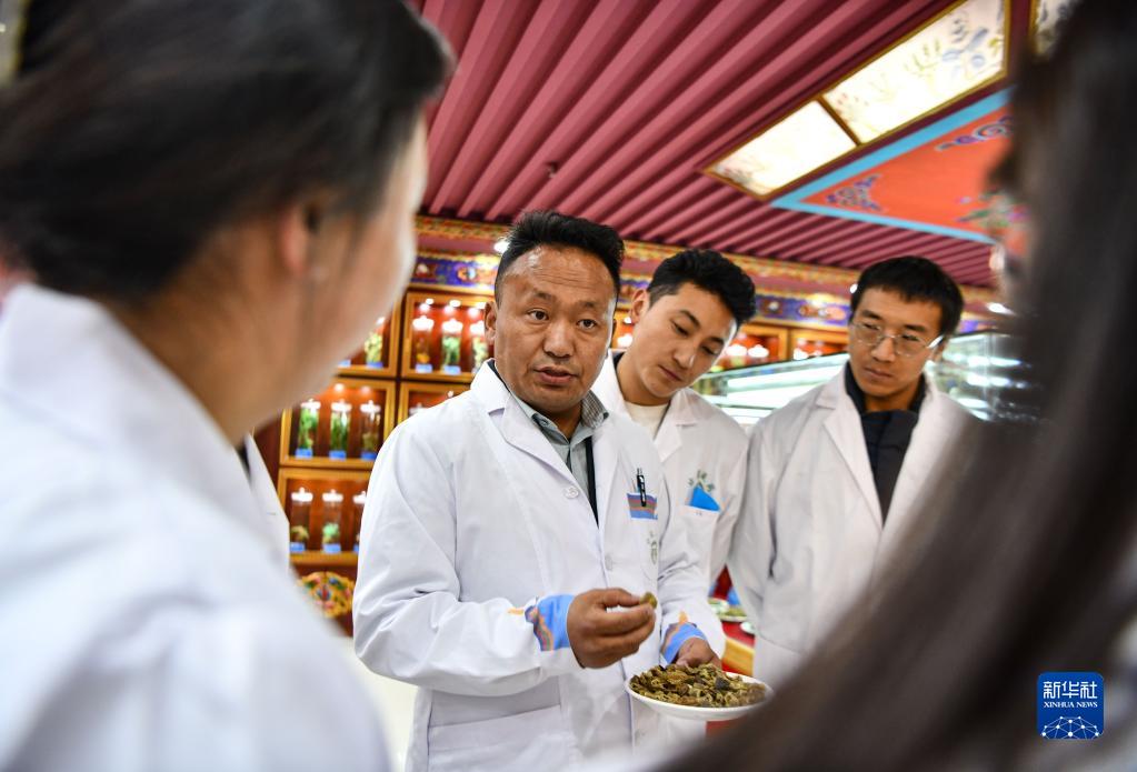 普窮次仁和學生們一起學習中醫(yī)藥相關政策(4月20日攝)。新華社記者 晉美多吉 攝