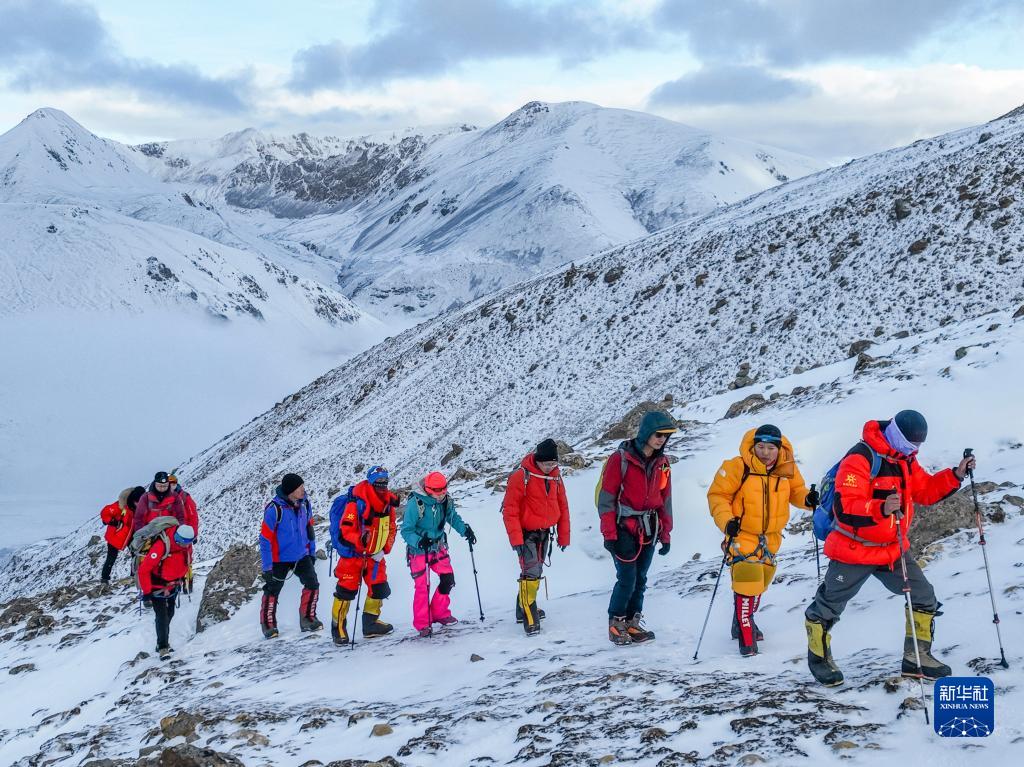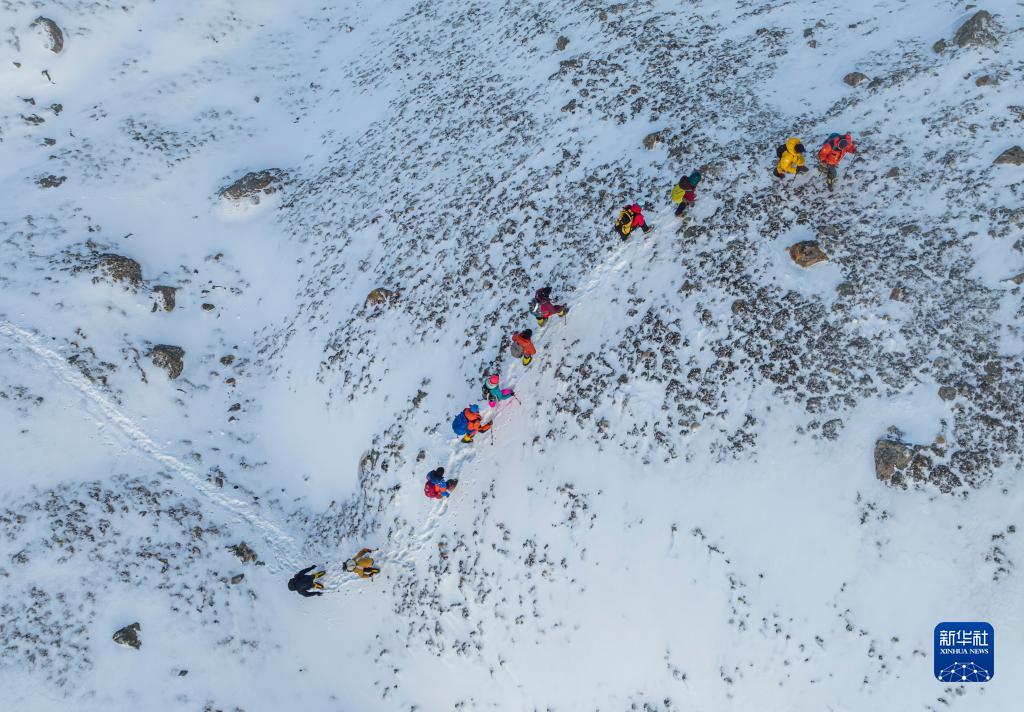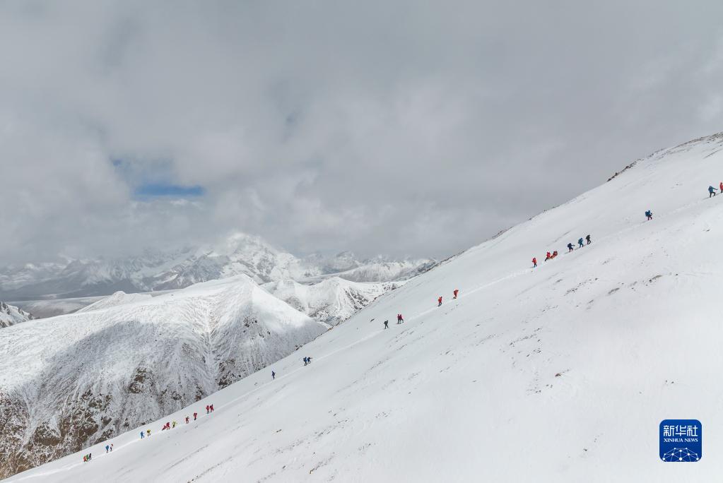 5月3日,登山愛(ài)好者正在向海拔6010米的洛堆峰峰頂進(jìn)發(fā)。新華社記者 黃耀漫 攝