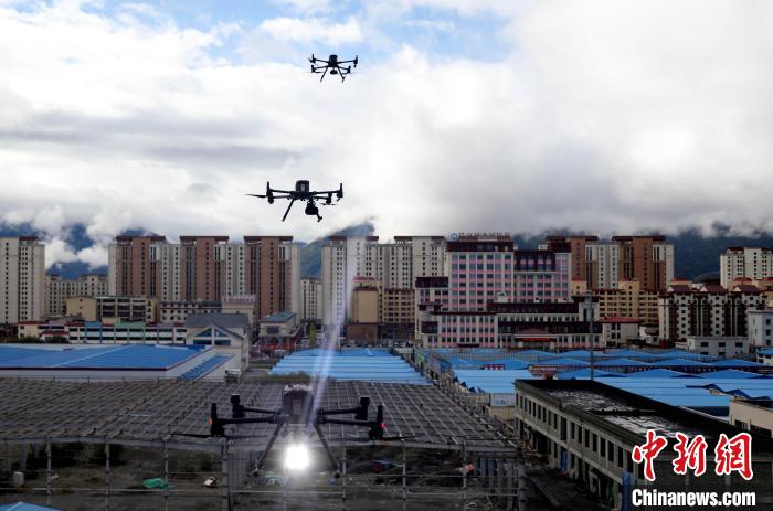 圖為演練中無人機正在進行勘察喊話。西繞拉翁 攝