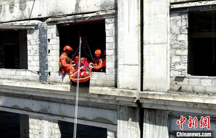 圖為演練中救援現(xiàn)場。西繞拉翁 攝