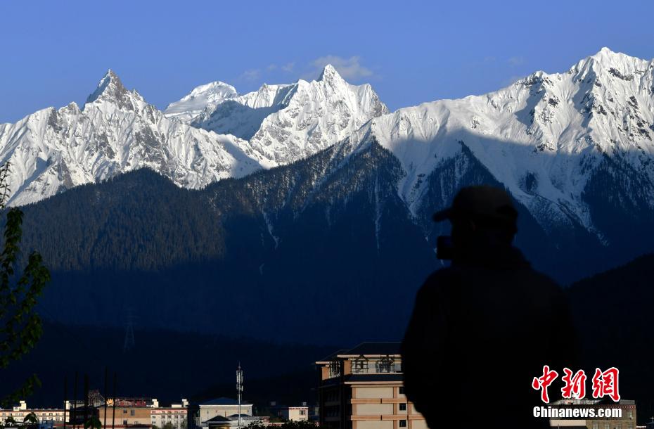 圖為5月13日,游客正在拍攝西藏波密縣雪山風(fēng)光。李林 攝