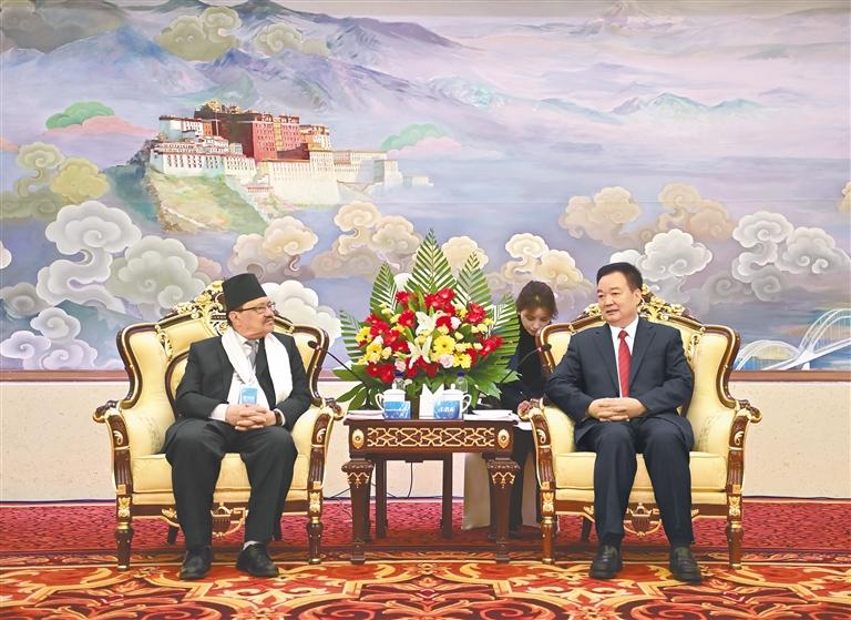 尼泊爾駐華大使比什努·普卡爾·施雷斯塔代表參訪團(tuán)感謝西藏的熱情接待,祝賀西藏在經(jīng)濟(jì)社會(huì)發(fā)展方面取得的成就。