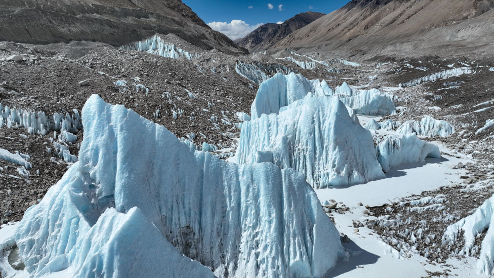 這是珠峰中絨布冰川(5月15日攝,無人機照片)。新華社記者 晉美多吉 攝