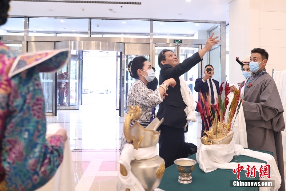 5月23日,“2023·中國西藏發(fā)展論壇”在北京舉行。會場外,活潑獨特的藏式迎賓舞蹈、展示西藏人文自然風貌的圖片,已在論壇開幕前預熱起探討西藏新發(fā)展的氛圍。圖為著名紀錄片導演、全球化智庫(CCG)高級研究員龍安志(Lawrence Brahm)接受哈達。