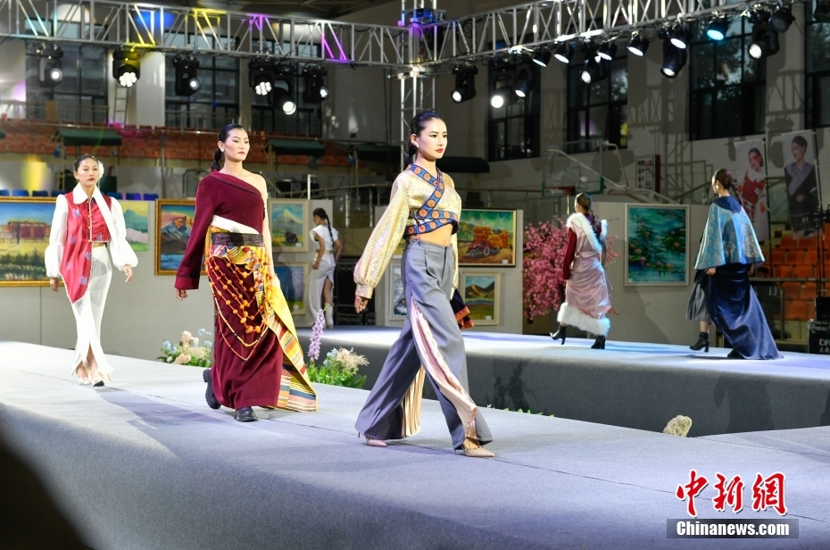 5月26日晚,西藏拉薩,西藏職業(yè)技術(shù)學(xué)院旅游與文化學(xué)院舉辦服裝與服飾設(shè)計(jì)專業(yè)2020級畢業(yè)生畢業(yè)作品展演活動。本次展演活動分為傳承、相遇、未來三部分,展現(xiàn)藏族傳統(tǒng)服裝與現(xiàn)代服裝設(shè)計(jì)的相遇與碰撞。中新社記者 貢嘎來松 攝