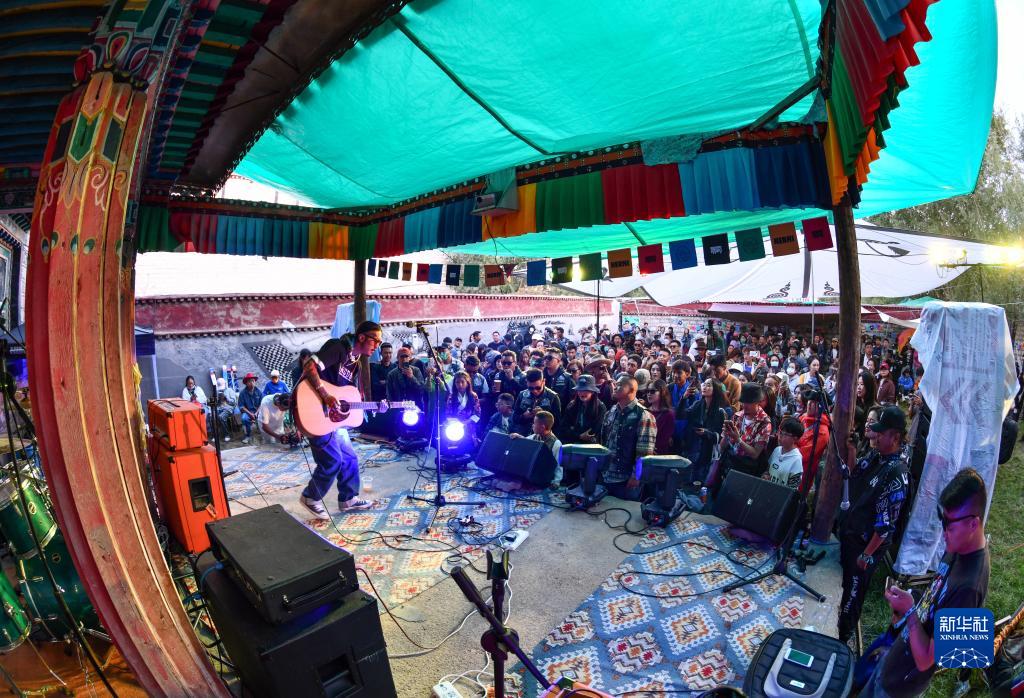 拉薩的年輕人在參加現(xiàn)場(chǎng)音樂會(huì)(2022年7月29日攝)。新華社記者 晉美多吉 攝