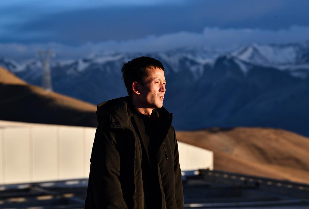 在阿里地區(qū)獅泉河鎮(zhèn)南部甲馬兒燈山海拔5100米的山頂上,我們看見了十年如一日守望璀璨星空的人——尤顯龍。他十七年前開始就為阿里天文臺的選址而工作,如今負(fù)責(zé)天文臺數(shù)據(jù)觀測和運(yùn)維設(shè)備。尤顯龍也是為阿里天文臺工作時間最長的一位工程師。