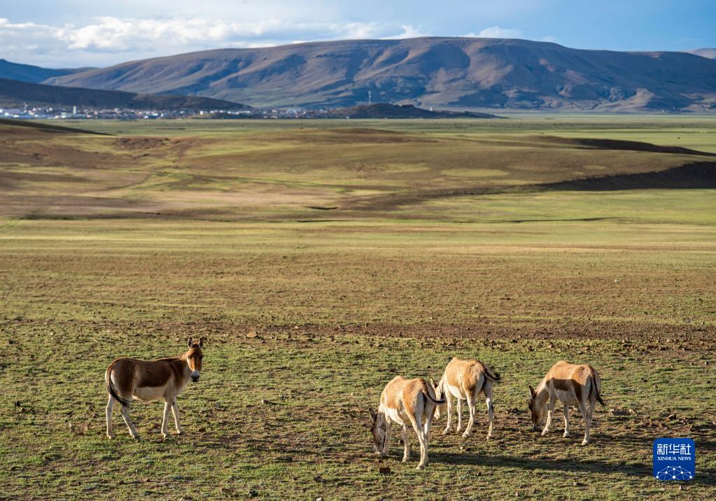 在哲古草原上嬉戲的藏野驢(6月28日攝)。新華社記者 孫非 攝