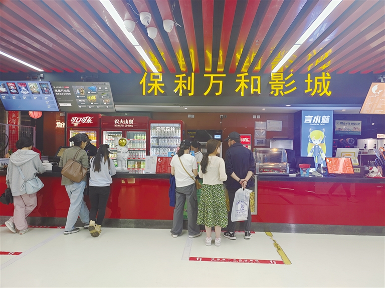 市民在保利萬(wàn)和影城購(gòu)買電影票。