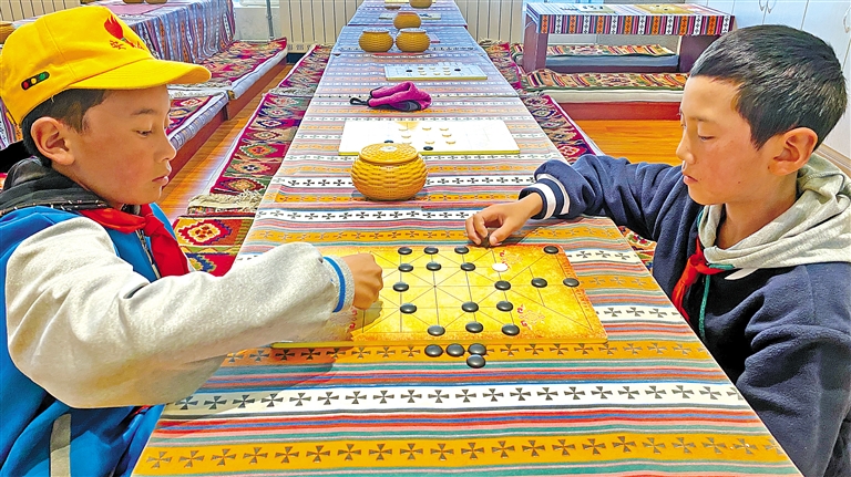 圖為該校學(xué)生在課余時間下藏棋。記者 格桑倫珠 攝