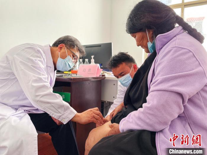在他的專門診室外排滿了步履蹣跚的老人,膝蓋疼、腰疼、腿疼是這個(gè)診室內(nèi)聽到最多的患者主訴,為了掌握病人按壓疼痛反饋,趙勇迅速學(xué)會(huì)了藏語“疼不疼”的說法。定位、消毒、進(jìn)針、松解、出針一套動(dòng)作一氣呵成,排隊(duì)的老人對(duì)這樣的治療充滿好奇和期待。
