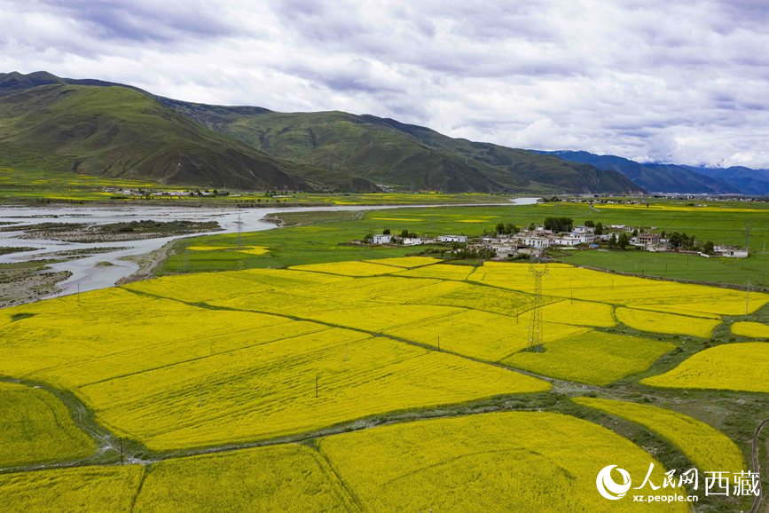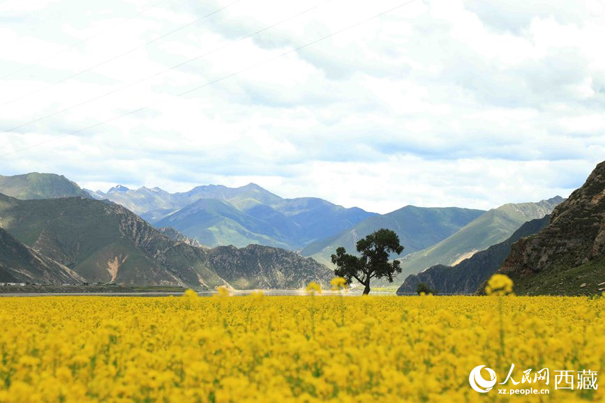 七月,正值拉薩墨竹工卡縣油菜花盛放的季節(jié)。經(jīng)過(guò)充足的光照、豐沛的雨水,大地仿佛披上金毯,黃燦燦的油菜田與翠綠的山巒構(gòu)成了一幅美麗的鄉(xiāng)野畫(huà)卷。