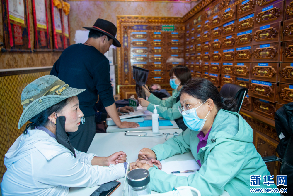 7月13日,來自北京安貞醫(yī)院的醫(yī)生在西藏丁青縣孜珠寺為僧人義診。新華網 旦增努布 攝