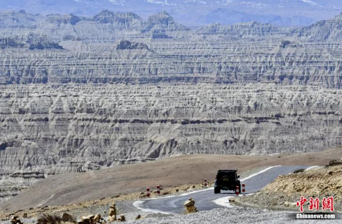 汽車駛向西藏阿里札達土林。札達土林位于西藏阿里地區(qū)札達縣境內(nèi),土林千溝萬壑,形態(tài)奇絕,景色迷人。李林 攝