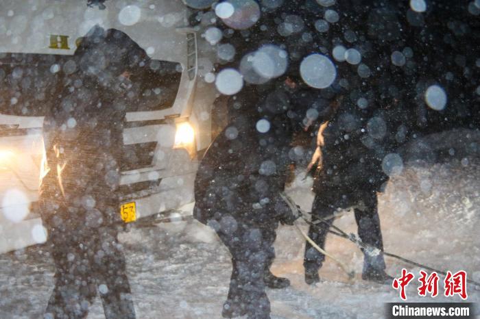 來到現(xiàn)場后楊軍發(fā)現(xiàn),該路段積雪超過半米深,車輛已經(jīng)深陷其中無法行駛。楊軍立即組織民警用鐵鍬鏟雪、人力助推、繩索牽引等進行施救,經(jīng)過一個多小時的努力,成功將部分被困車輛救出??涩F(xiàn)場風(fēng)雪突然變大,下雪速度遠(yuǎn)超過救援速度,轉(zhuǎn)眼間,路面積雪接近1米高,到深夜時,雙向車道上被困車輛、人員已達17輛、49人,看到情況越來越嚴(yán)峻,楊軍迅速對接、協(xié)調(diào)駐地交通部隊共同開展救援。